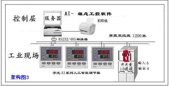 在系統(tǒng)中由于AI系列儀表的出色性能,宇電又開(kāi)發(fā)出基于AI儀表并具備現(xiàn)場(chǎng)總線特性的AIFCSV9.0計(jì)算機(jī)監(jiān)控系統(tǒng)。AI儀表相當(dāng)于現(xiàn)場(chǎng)總線系統(tǒng)中的各個(gè)控制單元,利用RS485作為現(xiàn)場(chǎng)通訊總線,采用宇電自行開(kāi)發(fā)的AIBUS通訊協(xié)議,可在上位機(jī)上實(shí)現(xiàn)100%儀表功能操作如實(shí)時(shí)讀取測(cè)量值、給定值、設(shè)置參數(shù)、自動(dòng)/手動(dòng)無(wú)擾動(dòng)切換、調(diào)整手動(dòng)輸出值、啟動(dòng)/運(yùn)行/停止程序,并具備開(kāi)關(guān)量輸入/輸出操作能力。開(kāi)放式結(jié)構(gòu)隨意添加控制儀表。