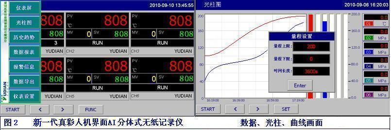 在顯示屏上模擬開關、按鈕、指示燈動畫、趨勢曲線、調(diào)節(jié)棒圖等。具有操作控制、狀態(tài)監(jiān)控、數(shù)據(jù)存儲、報表打印、無紙記錄儀通過網(wǎng)絡RS485通訊與計算機組建監(jiān)控系統(tǒng),每通道數(shù)據(jù)刷新時間50毫秒;