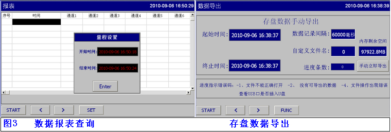 數(shù)據(jù)報表文件導出有【自動導出】、【立即導出】;設置、【自定義文件名手動導出】的方式;導出文件的大小可自由設定如:1小時、2小時、3小時、8小時。 顯示剩余【內(nèi)存空間 】
